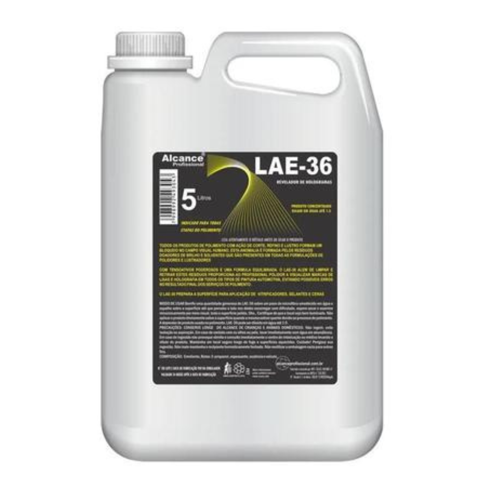 O LAE-36 5L é a solução definitiva para inspeção de superfícies e preparação para aplicação de ceras, selantes e vitrificadores. Formulado com agentes de revelação ótica à base de fluoresceína heterocíclica e solvente orgânico polar umectante, ele é ideal para intensificar o brilho, evidenciar micro-riscos, hologramas e anomalias geradas durante o processo de polimento.