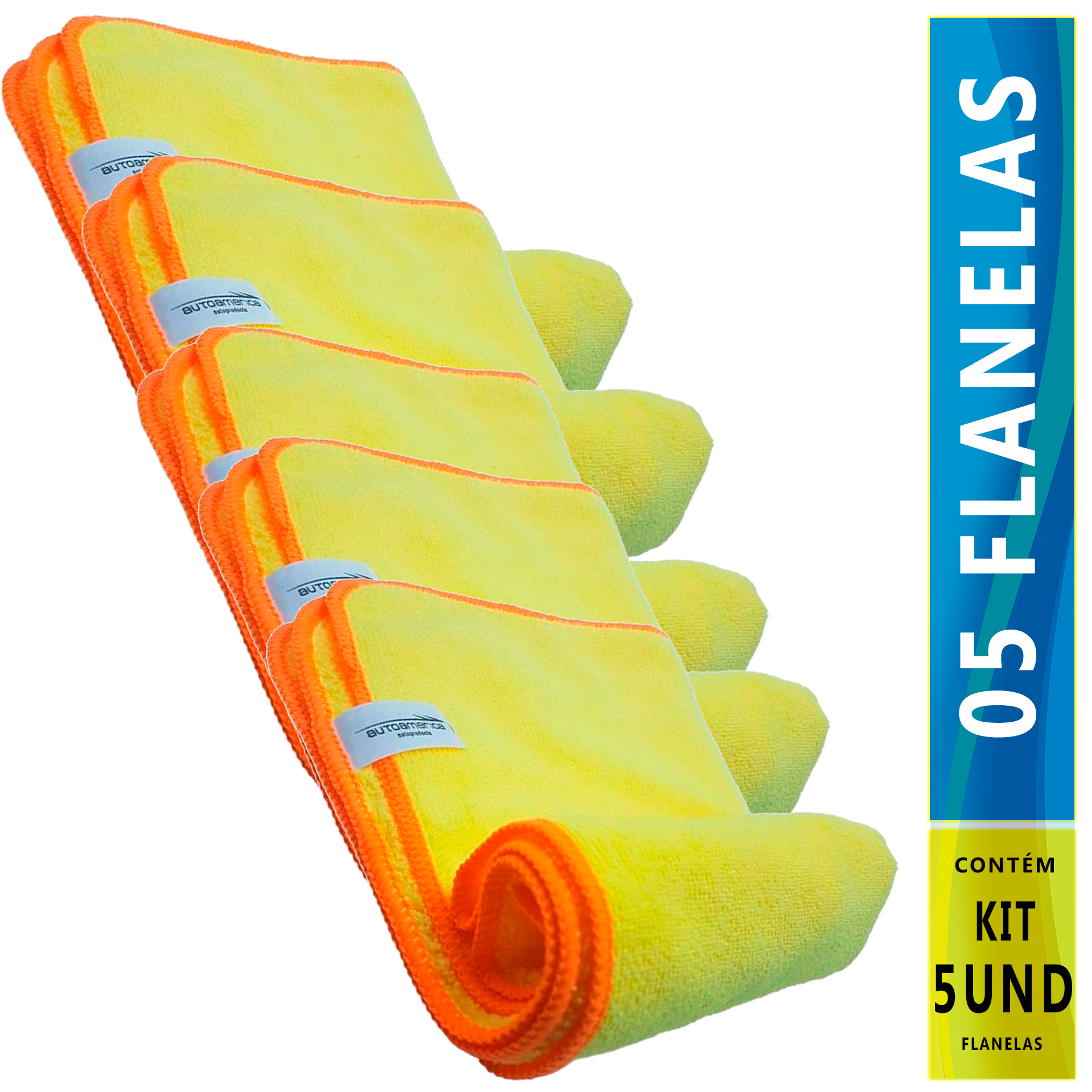 Kit com 05 Unidades – Flanela de Microfibra Amarela Premium | Autoamerica