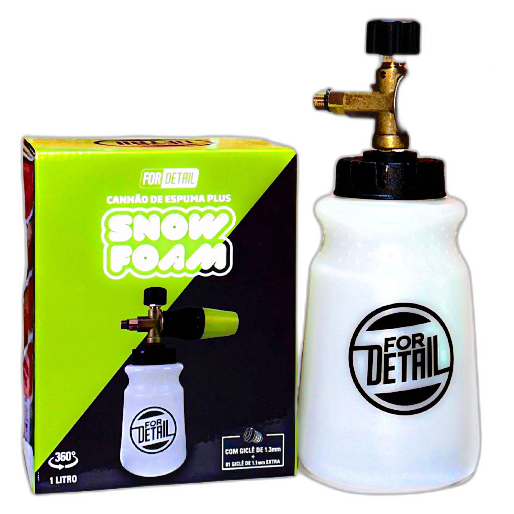O For Detail Canhão de Espuma Snow Foam é a ferramenta ideal para quem busca uma lavagem automotiva eficiente, segura e de alto padrão. Projetado com materiais resistentes como latão, nylon e plástico reforçado, ele oferece espuma espessa e uniforme que auxilia na remoção de sujeiras sem contato direto, evitando riscos na pintura.