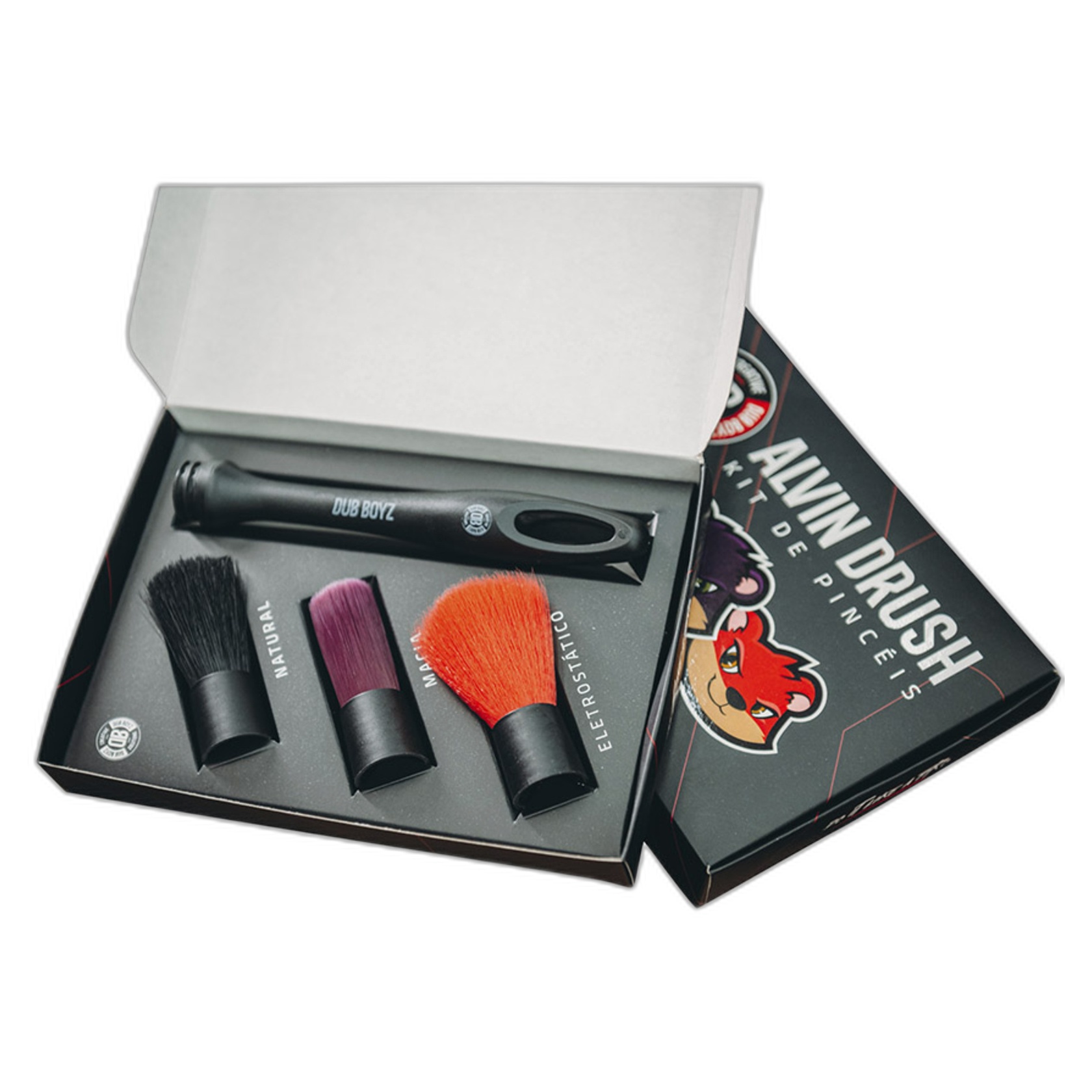 O Alvin Drush da DUB BOYZ é a ferramenta essencial para detalhamento e limpeza de superfícies internas e externas, garantindo eficiência, precisão e segurança. Com três tipos de cerdas intercambiáveis, ele oferece versatilidade para diferentes aplicações.
