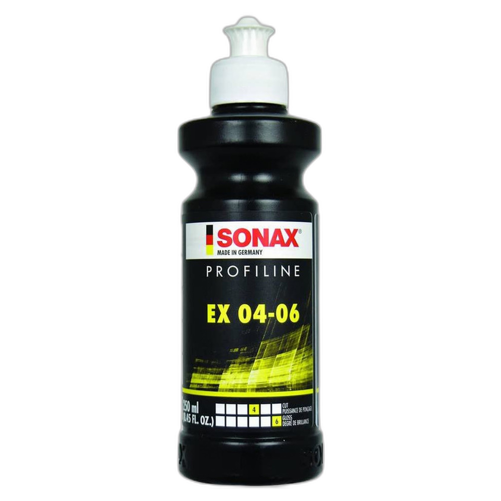 Sonax EX 04-06 é um composto INOVADOR DA LINHA SONAX PROFILINE com abrasivos de refino e lustro para uso em máquinas orbitais.