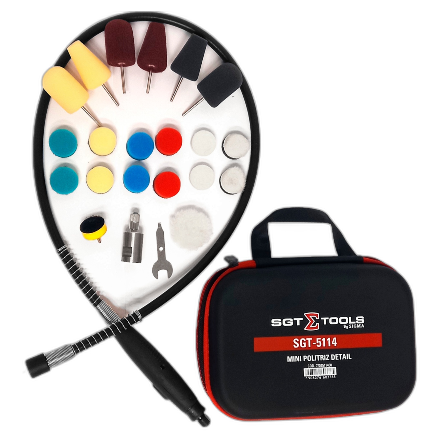 A Sigma Minitriz SGT5114 é ideal para polimento e detalhamento de áreas pequenas e de difícil acesso em veículos, como faróis, luzes de freio, maçanetas, emblemas e consoles interiores.