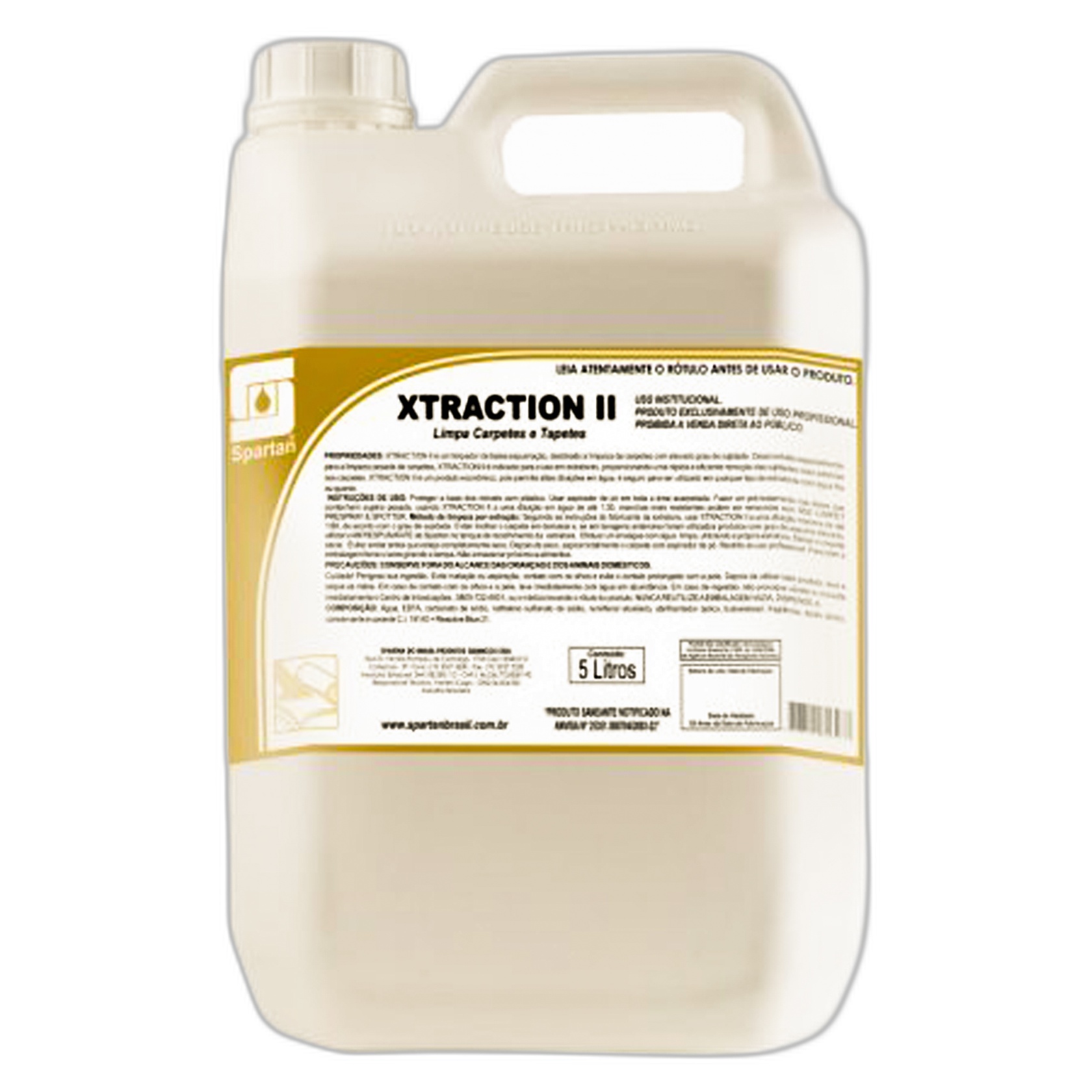 Ideal para áreas com alto tráfego, o Xtraction II atua profundamente na remoção de sujeira sem gerar espuma excessiva, o que o torna seguro para o uso em extratoras. Pode ser usado em conjunto com os produtos da linha Spartan como Finisherfresh, Solvfresh, Clean By Peroxy, entre outros.