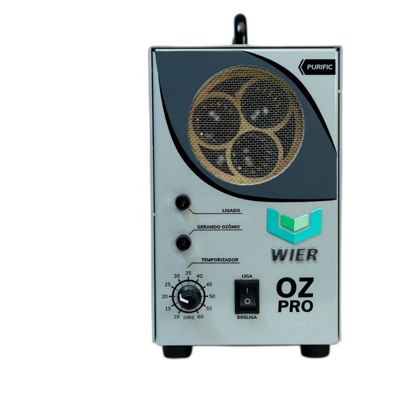 O WIER OZpro se destaca pela sua construção robusta, potência de 100W, bivolt automático e área de atuação estendida. Seu temporizador mecânico confiável permite programação de 10 a 60 minutos com desligamento automático. O corpo metálico com alça ergonômica reforça sua resistência e mobilidade. Essas características fazem dele a escolha número um para quem busca desempenho, durabilidade e facilidade de operação em um só produto.